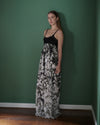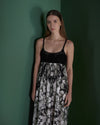 Crochet knitted top with attached fabric skirt featuring a photo of flowers. Inspired by the lively flower markets of Lima, Peru’s coastal capital. The CAMANÁ dress is hand-crafted in Peru and made with ethically sourced materials from local partners.
