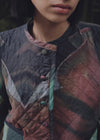 Printed quilted vest with two pockets featuring a photo of flowers with matching buttons. Inspired by the lively flower markets of Lima, Peru’s coastal capital. The RETAMA vest is hand crafted in Peru and made with ethically sourced materials from local partners.